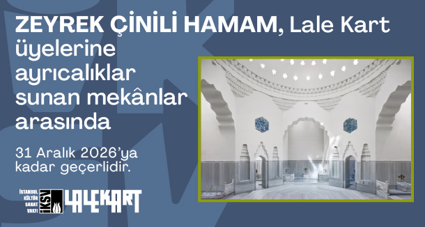 Siyah ve Beyaz Lale Kart üyeleri, 31 Aralık 2026’ya kadar Zeyrek Çinili Hamam’da %15 indirim avantajından faydalanıyor. Rezervasyon işleminizde İKSV Siyah veya Beyaz Lale Kart üyesi olduğunuzu belirterek veya fiziki ya da elektronik cüzdanınızdaki Lale Kart’ınızı göstererek avantajınızdan yararlanabilirsiniz.